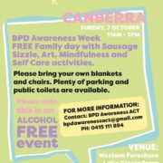 Mental Health First Aid Courses are held in Canberra throughout the year. Although not BPD specific, completing this 4-hour course can assist loved ones and carers of people with BPD in responding to self-harm, psychosis and suicidal ideation. Details